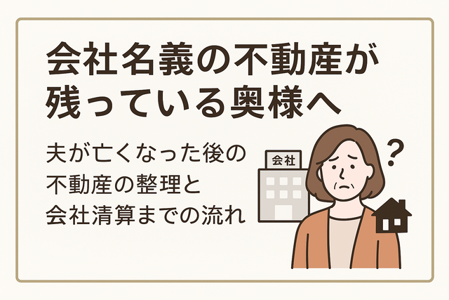 ご主人が亡くなり、会社名義の不動産がそのまま残ってしまって困っている奥様からのご相談が、とても多く寄せられています。