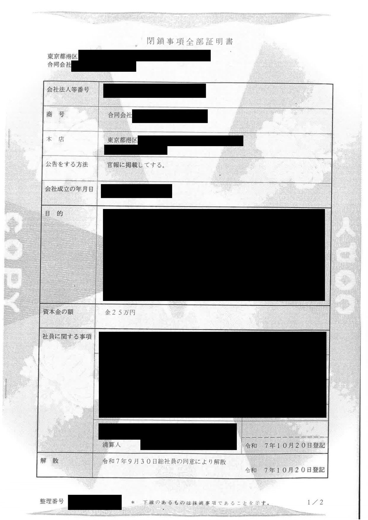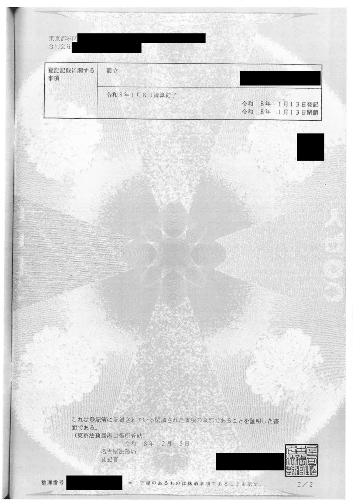 清算結了日:令和8年1月8日